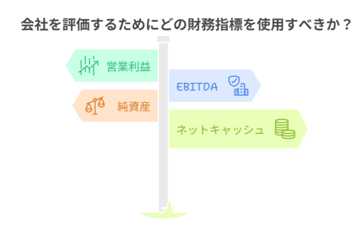 したがって会社を評価する際は、営業利益・EBITDA・純資産・ネットキャッシュの4つの指標を合わせて見ます。