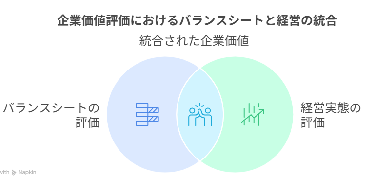 企業価値は、将来生み出すキャッシュ(収益力)と、現在保有している資産・負債の状態の合計で考えるからです。