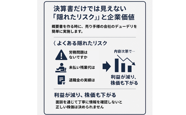 概要書を作る時に、売り手様の会社のデューデリを簡単に実施させて頂きます。