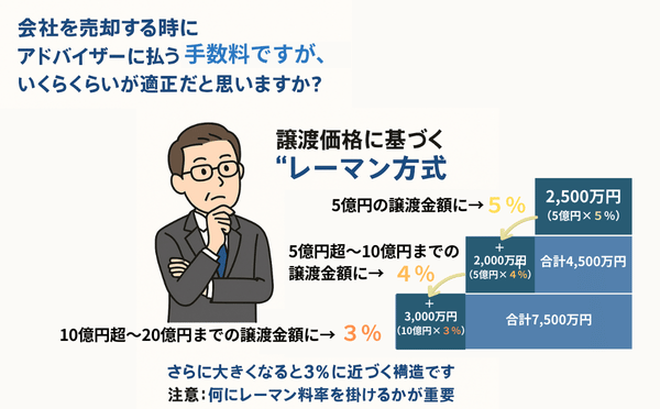1.会社を売却する時にアドバイザーに払う手数料ですが、