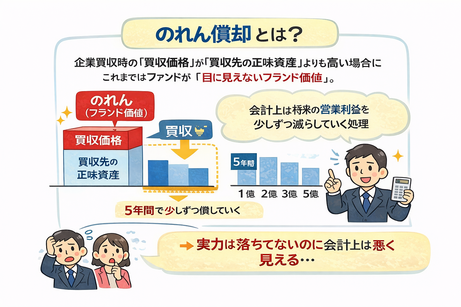 のれんを償却すべきか残すべきかは、プロの会計士の間でも意見が分かれるところですが、世界基準が「しない」である以上、そこに合わせることで投資家にとっての透明性を高めようとしているのです。