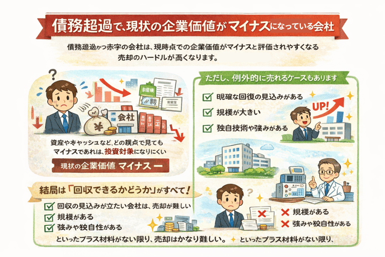 たとえば、債務超過でも規模があれば売れることがあります。