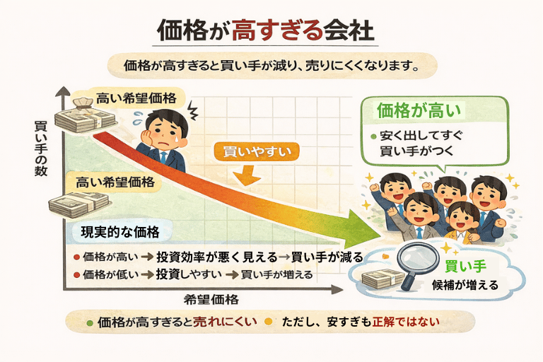 • 価格が高い → 投資効率が悪く見える → 買い手が減る
